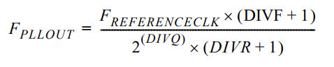 We don’t need a high frequency to blink some LEDs, but there are limits to how slow the PLL can operate. Further reduction of the clock frequency can be achieved in the digital logic. PLLs can be complicated to program correctly. It is highly recommended that you read and understand the iCE40 sysCLOCK PLL Design and Usage Guide. Until you get around to reading that document, the following formula is most important: